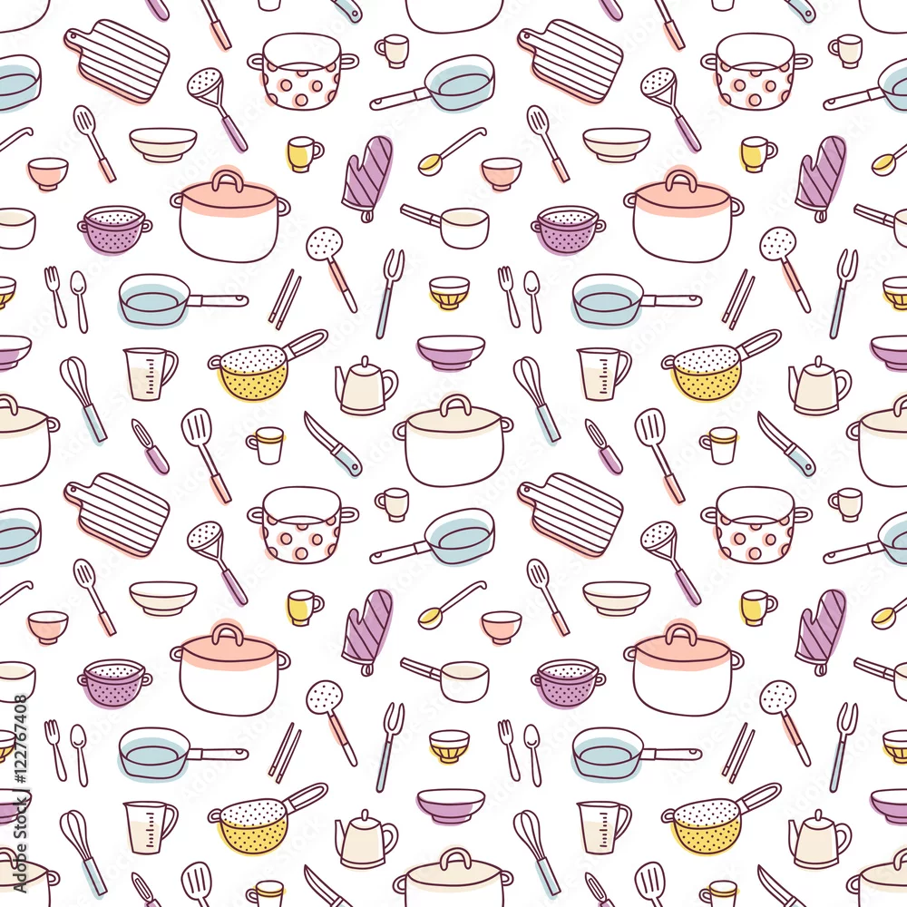 Tapety Przybory kuchenne i przybory kuchenne doodle wzór
