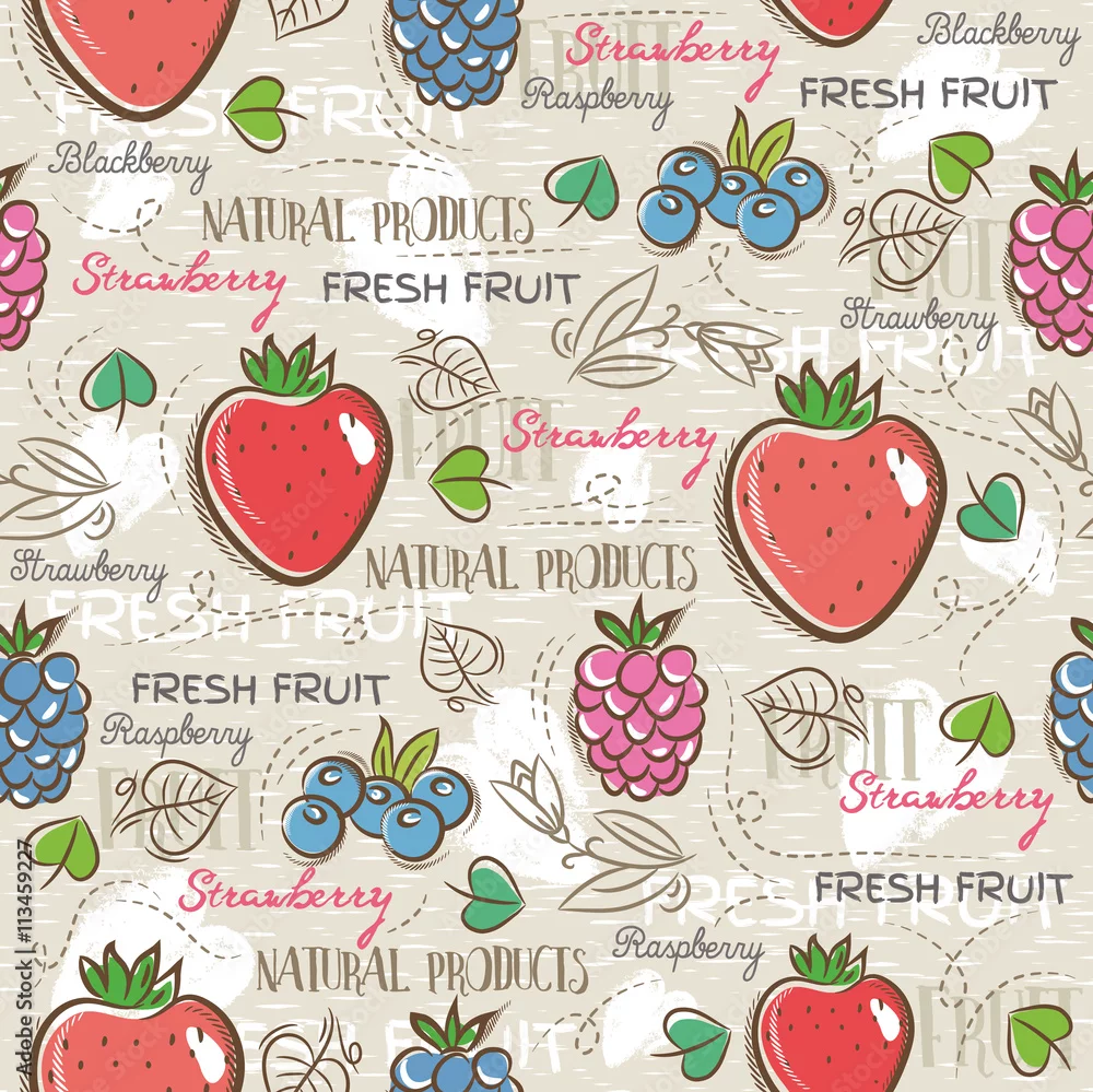 Tapety Tło z truskawką, czernicą, jagodą, wektorem - do kuchni - Picturewall.pl