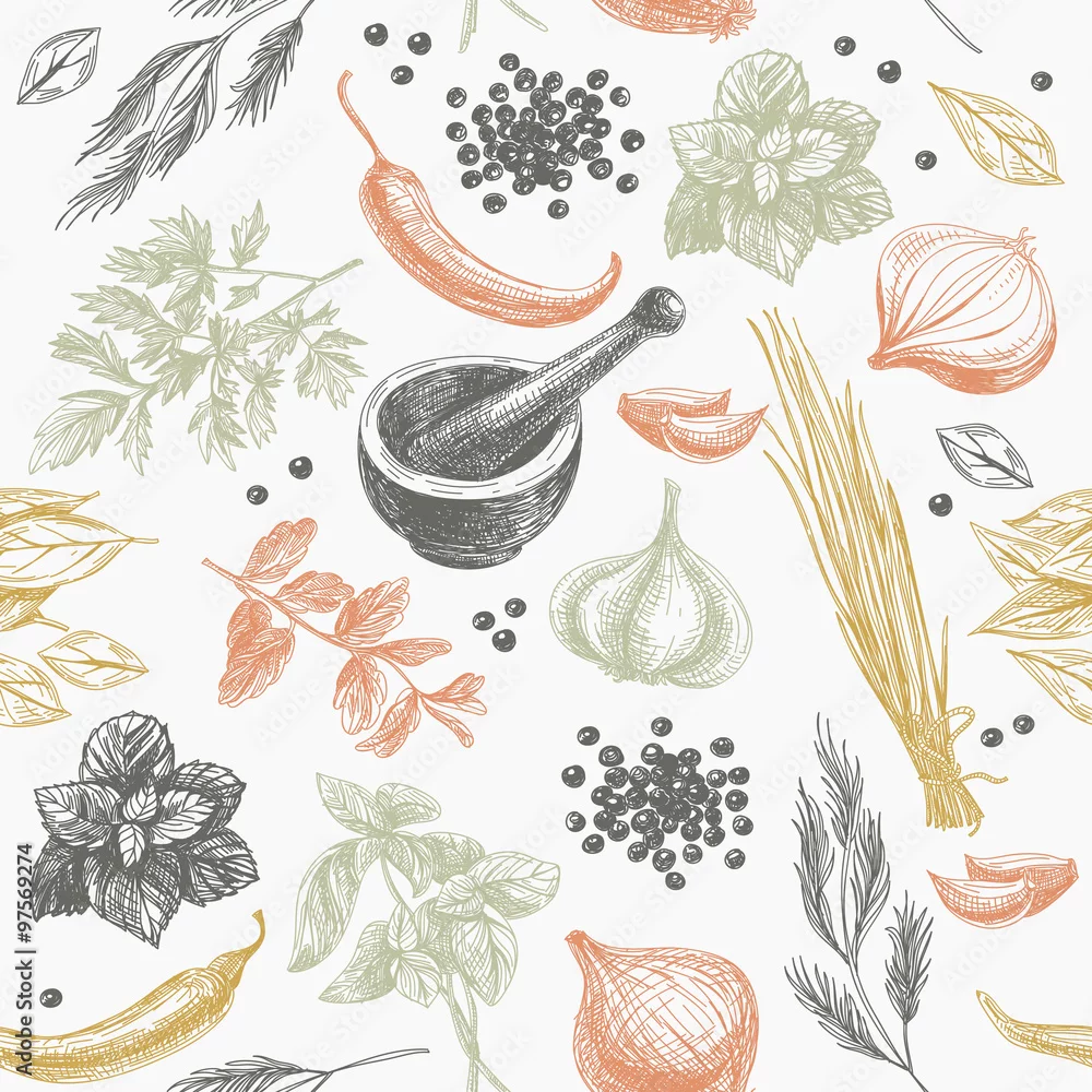 Tapety Wektorowy bezszwowy wzór z ziele i pikantność. - do kuchni - Picturewall.pl