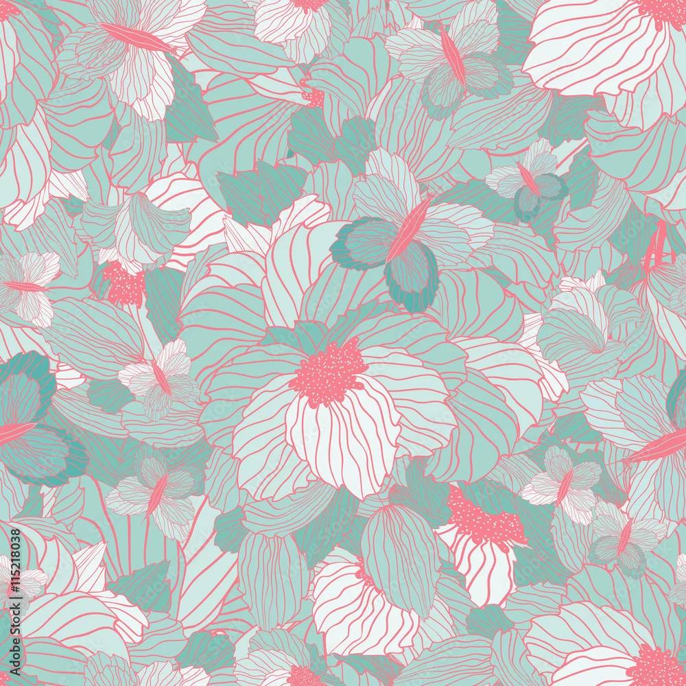 Tapety Bezszwowe lato kwiatowy wzór - do łazienki - Picturewall.pl
