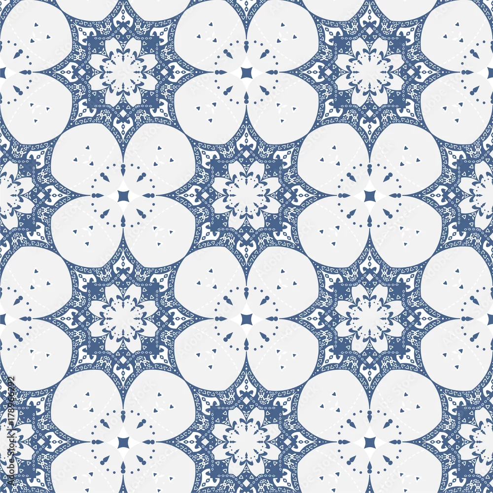 Tapety delikatny kwiatowy wzór bez szwu, niebieskie białe tło - do łazienki - Picturewall.pl
