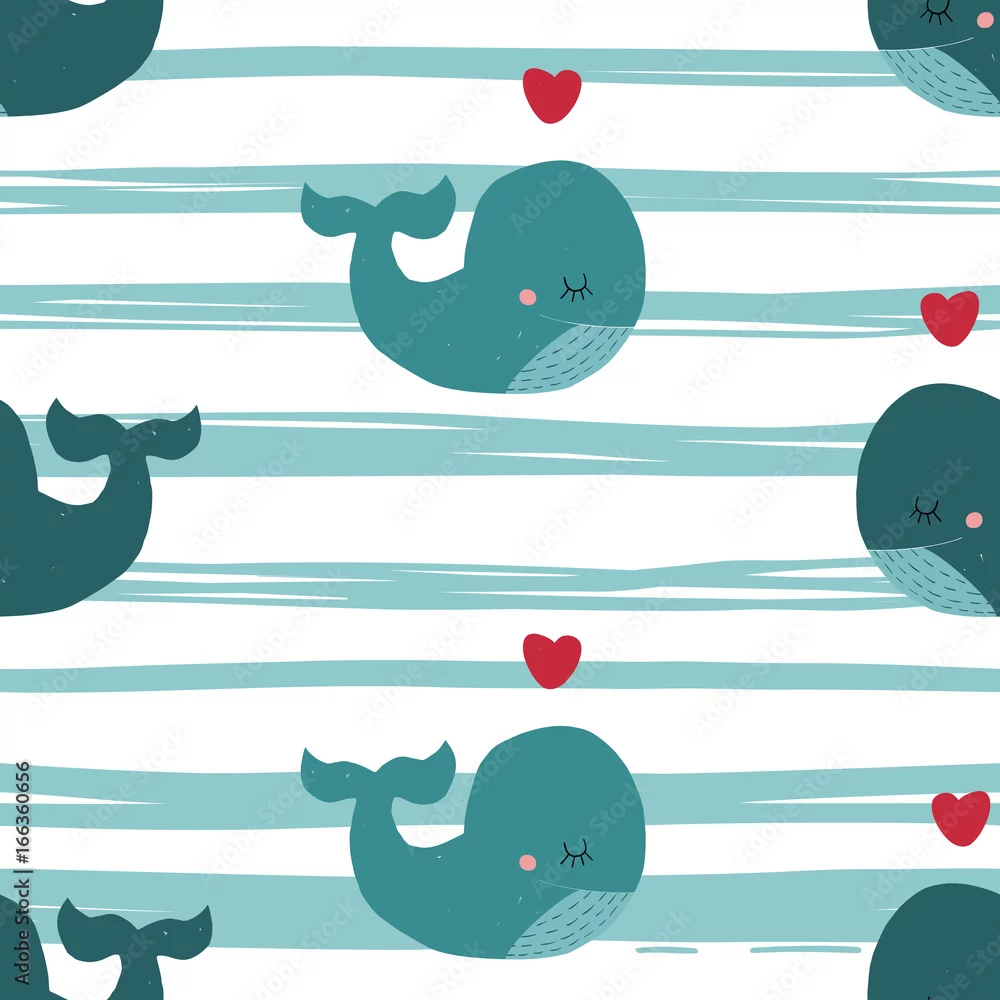 Tapety Słodkie dziecko wektor wzór z wieloryba, serca i linii.
