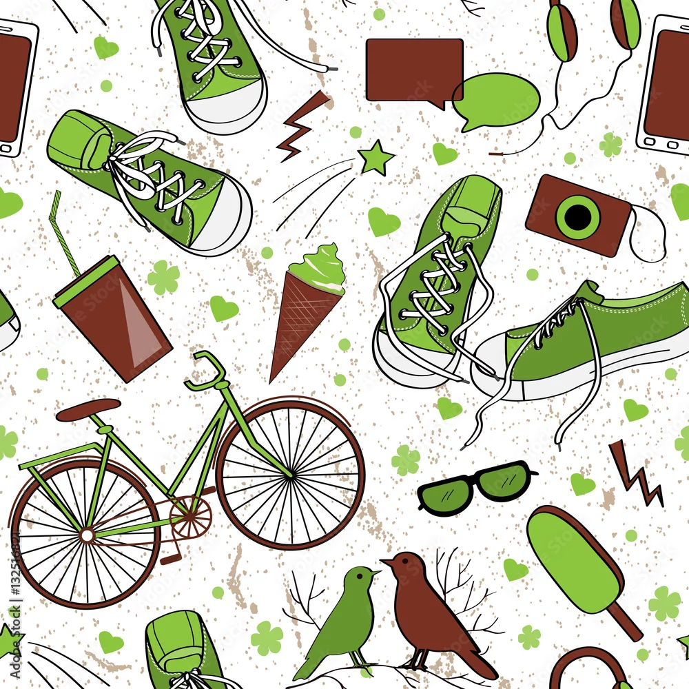 Tapety Śliczny nastolatka wzór w zielonej i brown palecie
