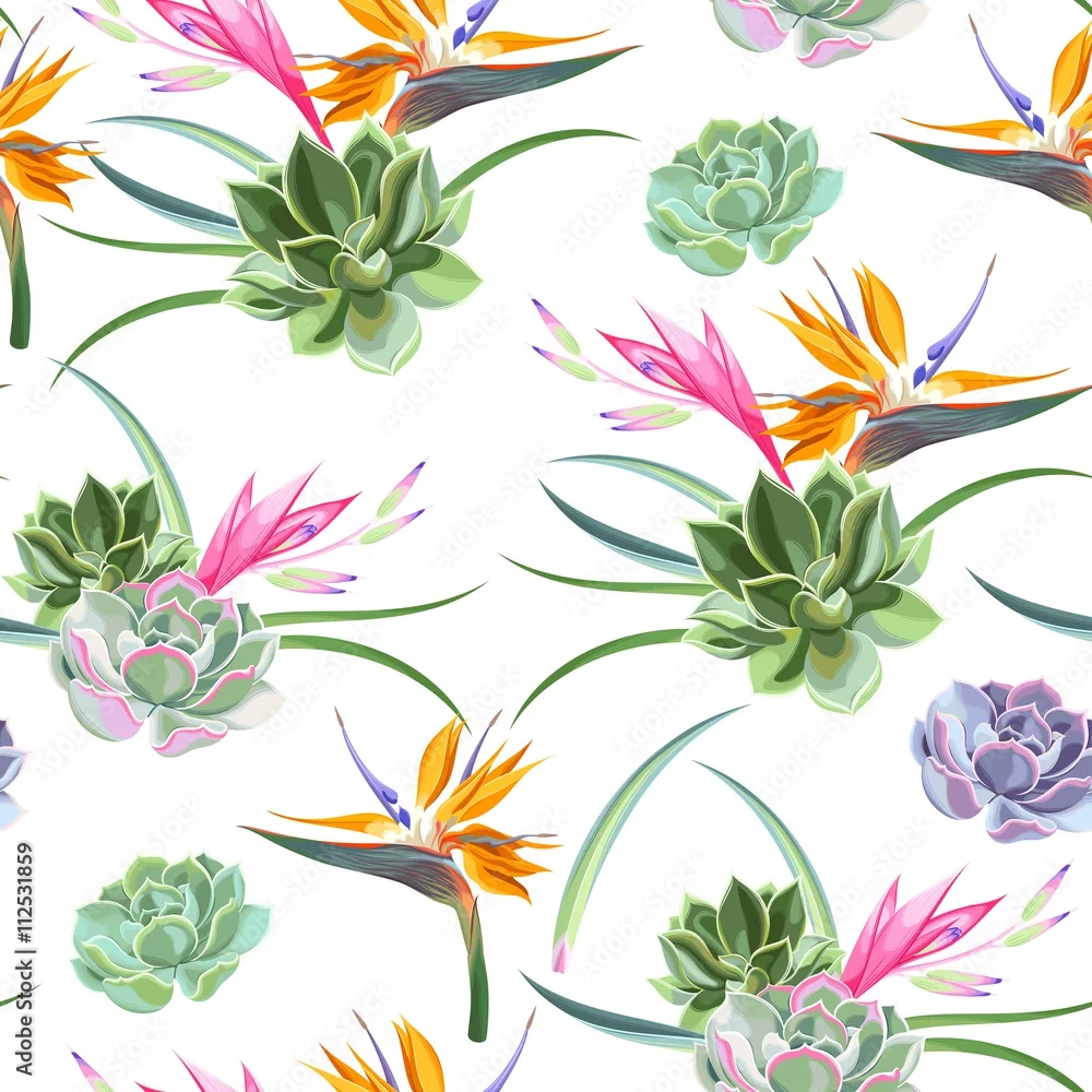 Tapety Egzotyczne kwiaty i sukulenty bez szwu