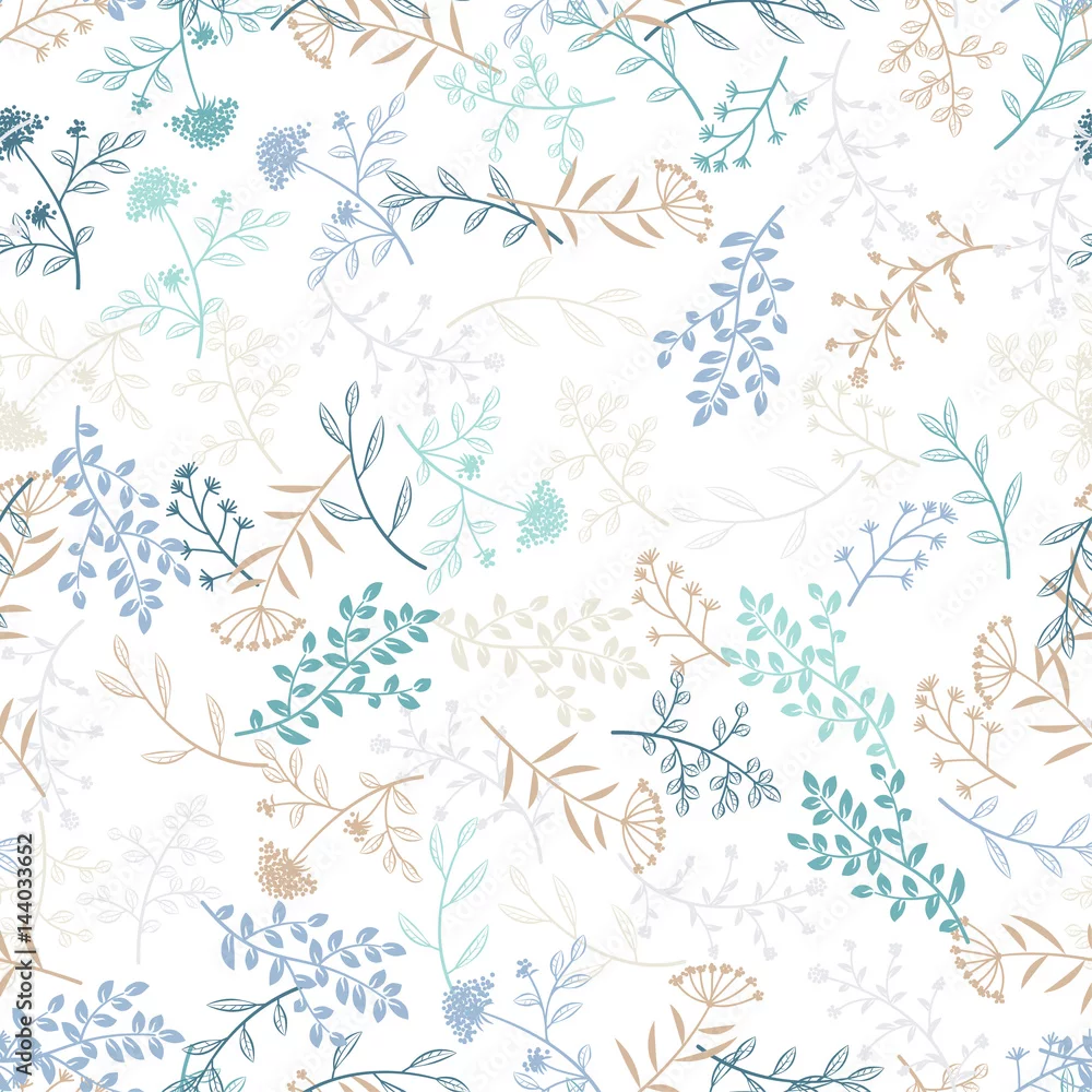 Tapety Bezszwowe wektor wzór ziołowy. Doodle kwiaty ornament w stylu retro.