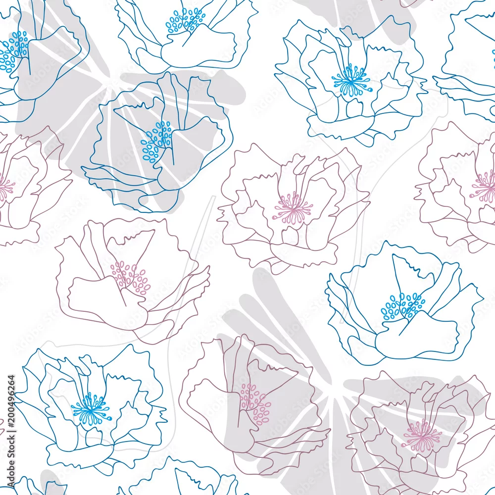 Tapety Duże kwiaty maku i tropikalne liście. Kwiatowy wektor wzór z ręcznie rysowane elementy botaniczne.