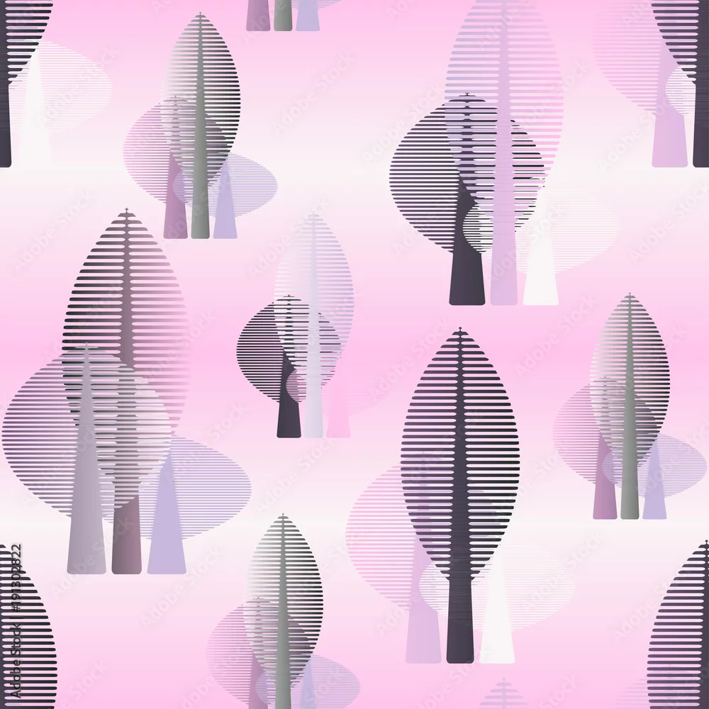 Tapety stylizowany wzór lasu w różowych srebrnych odcieniach