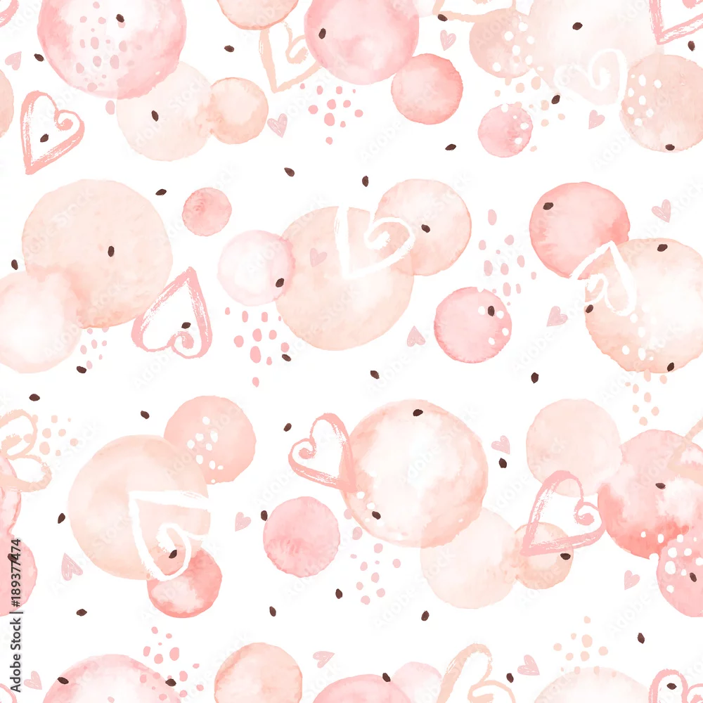 Tapety Tekstura wektor akwarela Aquarelle koła w słodkich różowych kolorach. Wzór. Akwarela koła z suchym pędzlem serca na białym tle.