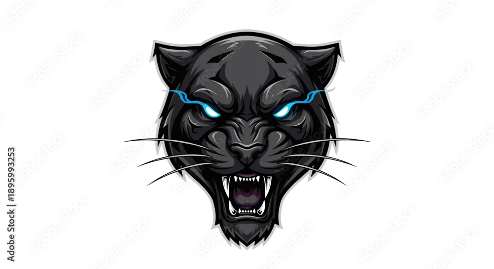Tapety Black Panther Head Illustration with Glowing Eyes. - koty - Picturewall.pl