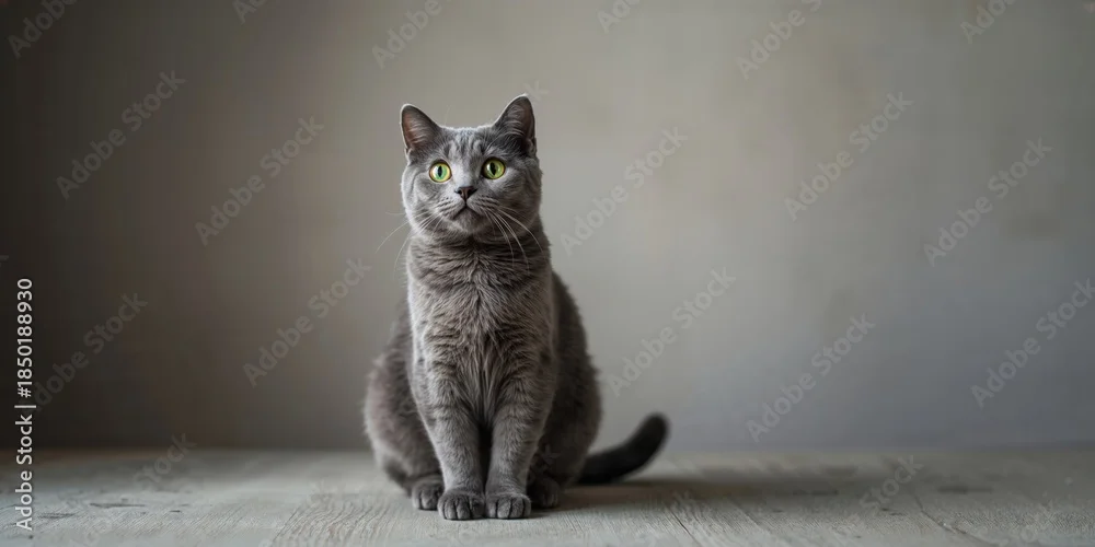 Tapety Russianblue cat gazing intently, emphasizing feline curiosity and attentive posture - koty - Picturewall.pl