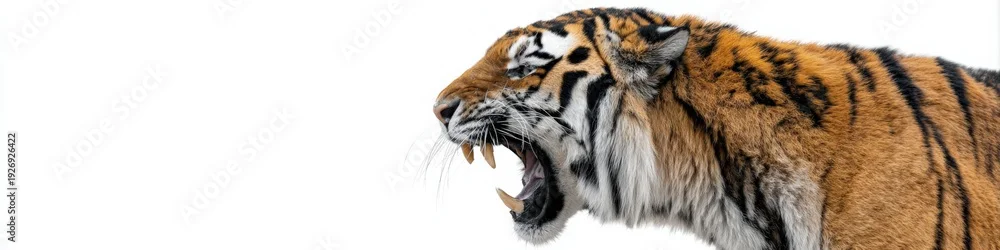 Tapety Side profile of a roaring bengal tiger on white background - koty - Picturewall.pl