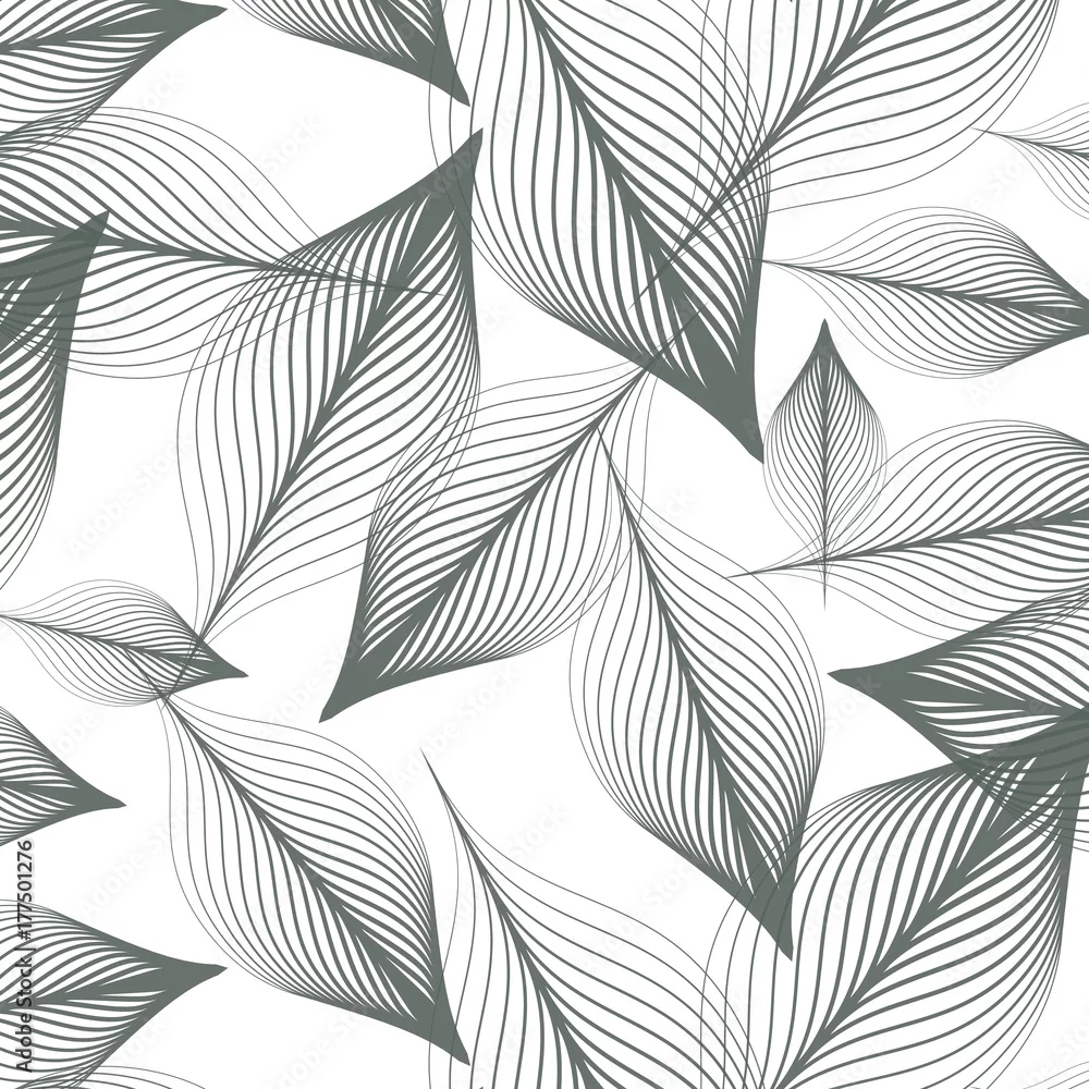 Tapety liniowy wzór wektor, powtarzające się liście streszczenie, szara linia liści lub kwiatów, kwiatowy. czysty graficzny wzór tkaniny, wydarzenia, tapety itp. wzór znajduje się na panelu próbek.