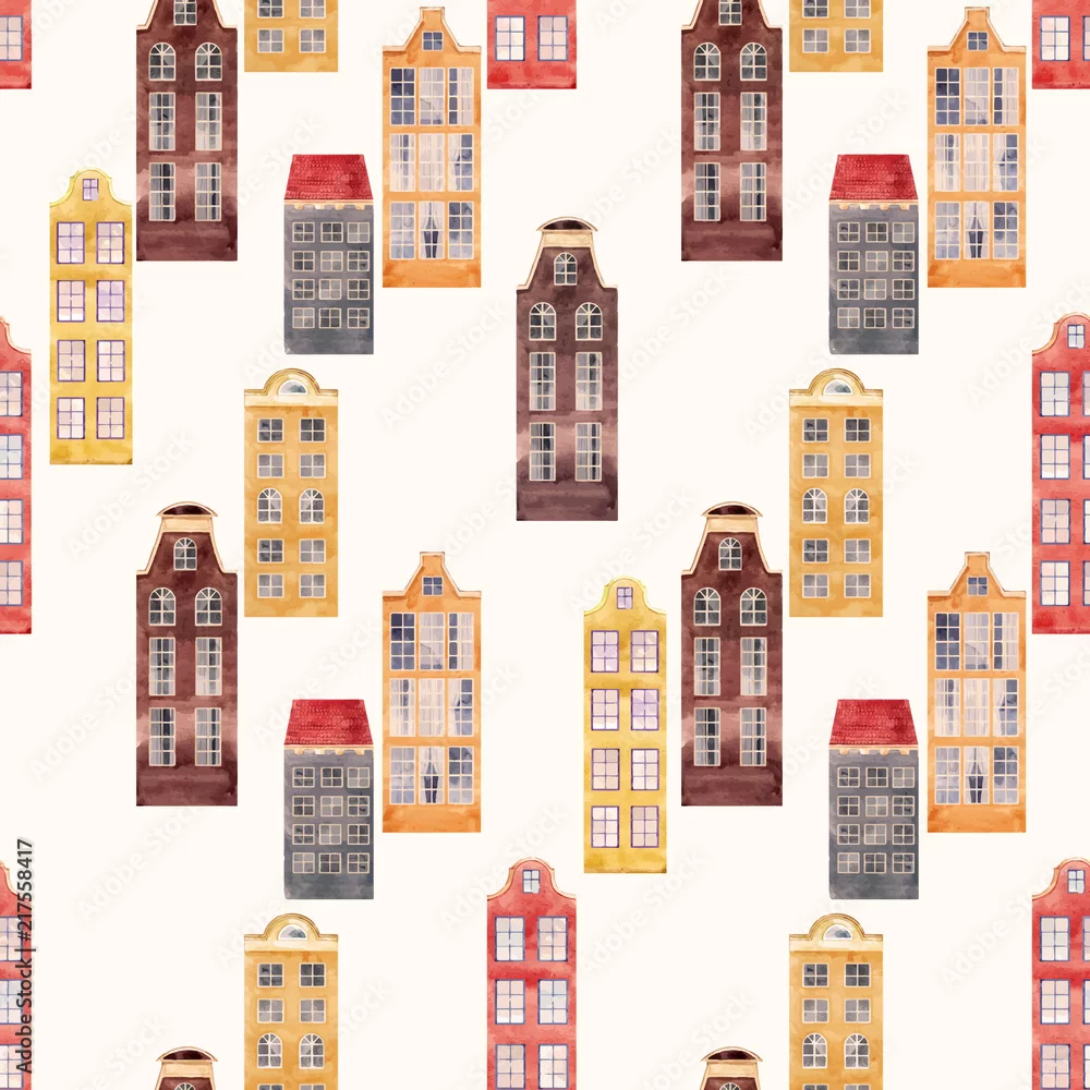 Tapety Bezszwowego wektoru wzoru starzy europejscy miasto domy