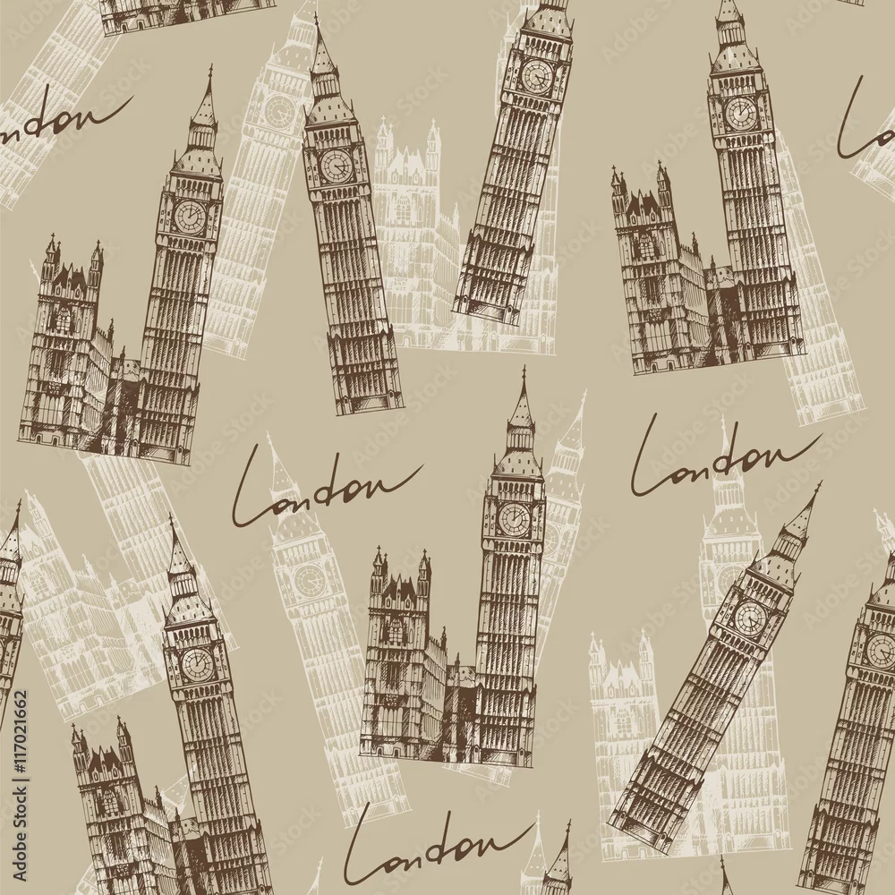Tapety Wzór w stylu vintage z Big Ben (Elizabeth Tower), Londyn, En
