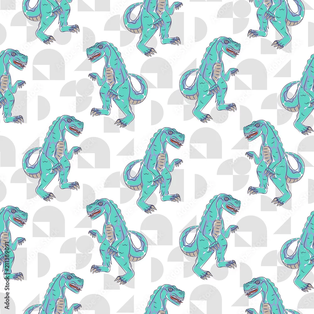 Tapety Dino potwór chłopiec wektor wzór bez szwu. Zły niebieskie tło dinozaura do wydruku.