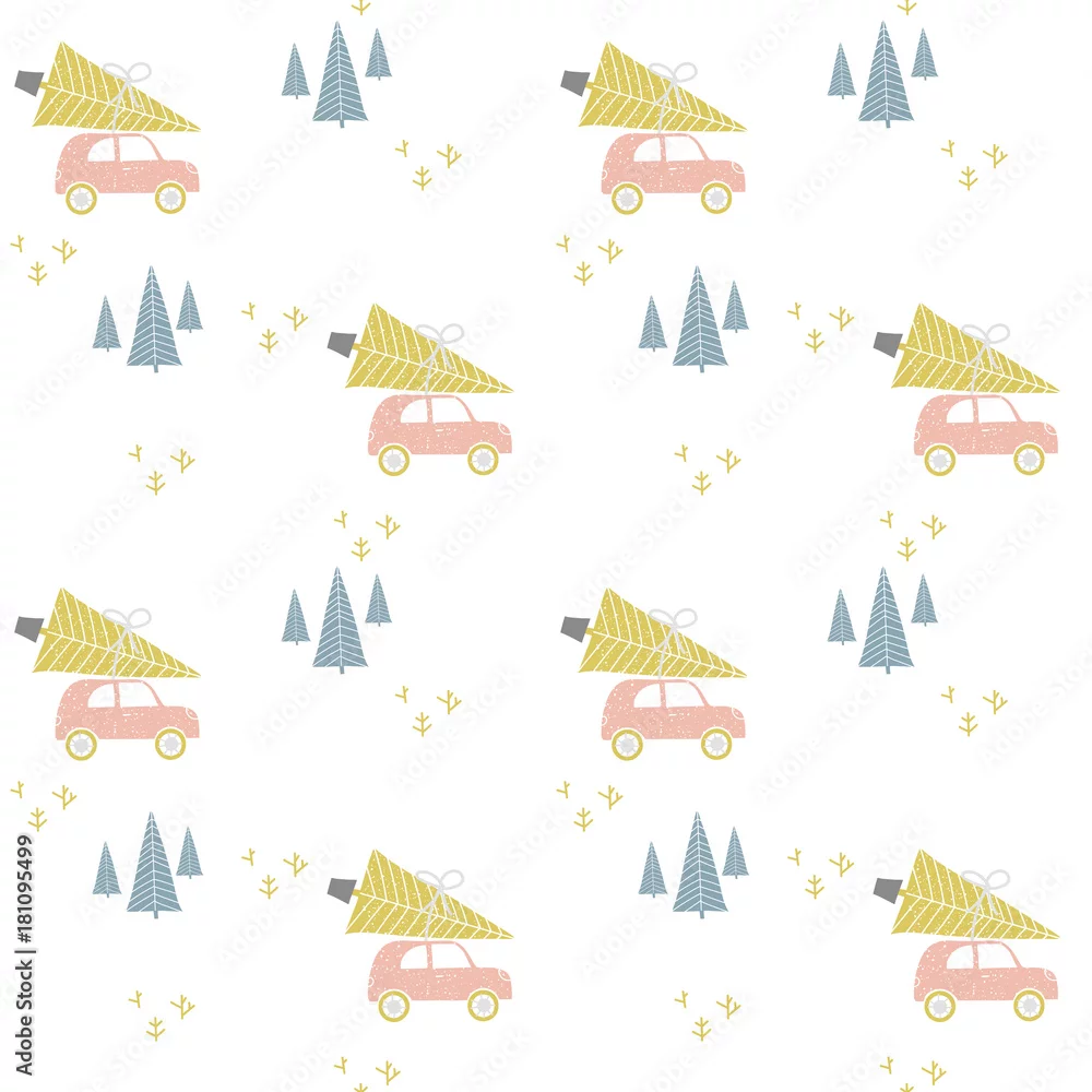 Tapety Boże Narodzenie wzór z różowymi samochodami, wektorowa ilustracja