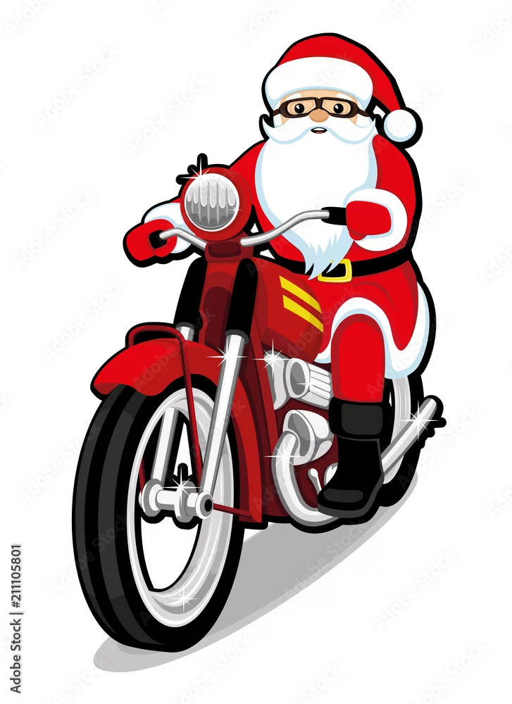 Tapety Rozochocony Święty Mikołaj na czerwonym retro motocyklu. - pojazdy - Picturewall.pl