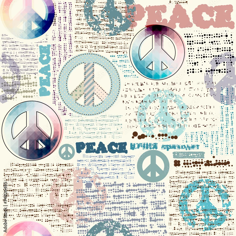 Tapety Imitacja gazety grunge z pokojowymi symbolami.