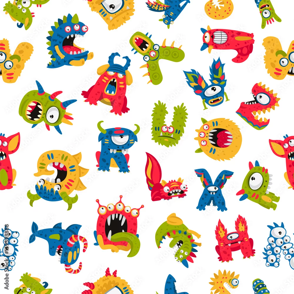 Tapety Jednolity wzór różnych potworów - z napisami - Picturewall.pl