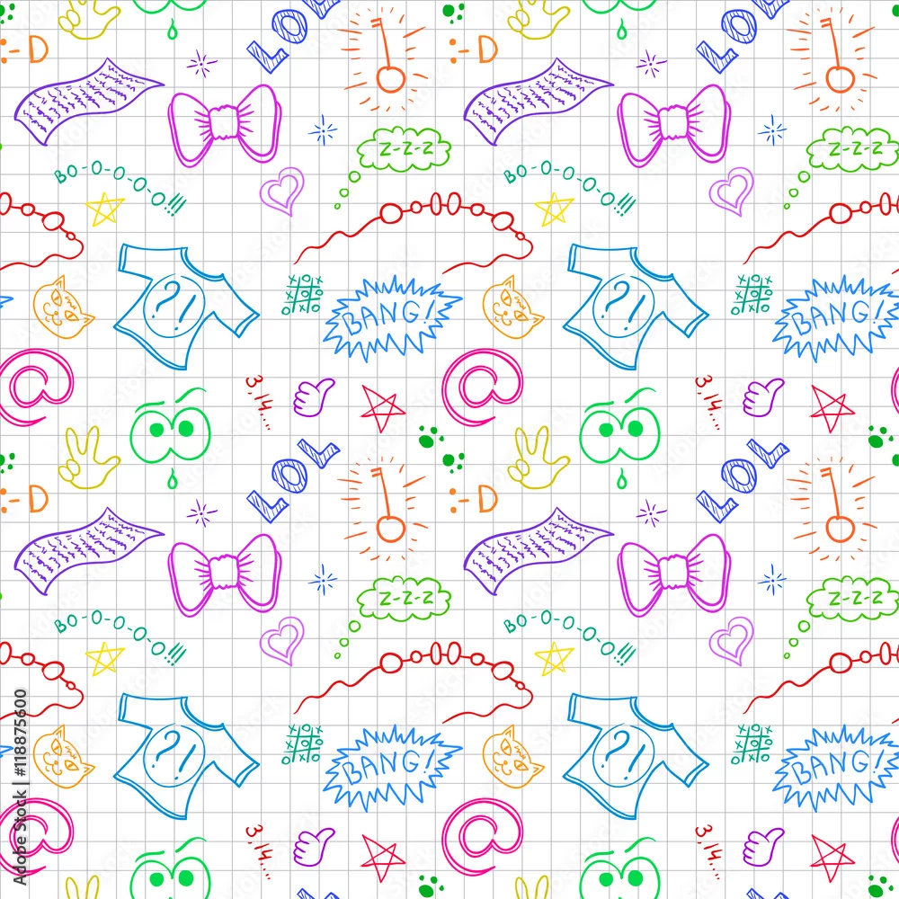 Tapety Wektorowy projekt dla nastolatka bezszwowego tekstylnego druku z nowożytnymi symbolami młodość na nutowym papierze.